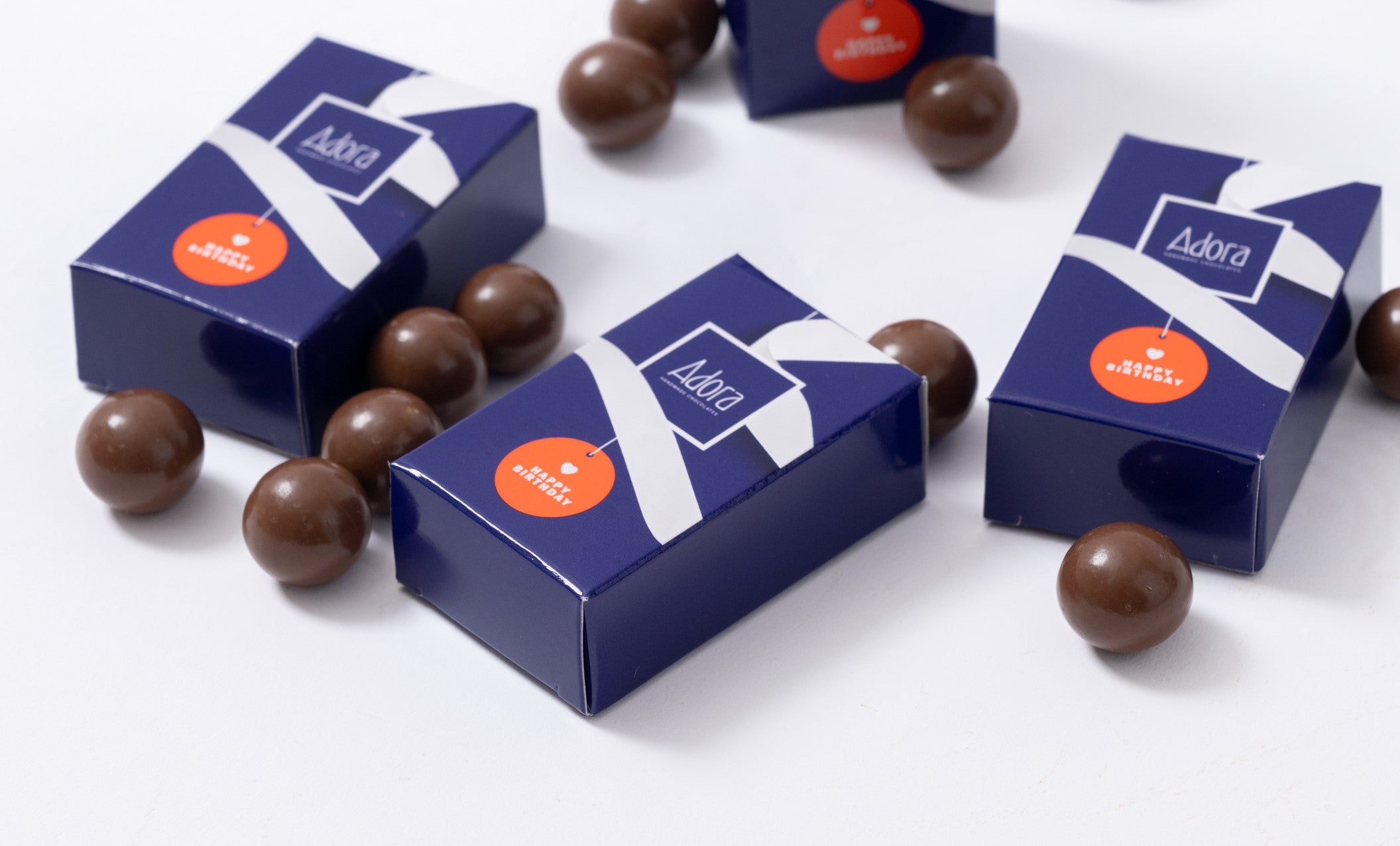 - Happy birthday box filled with our best selling Australian almonds, covered with 34% milk chocolate